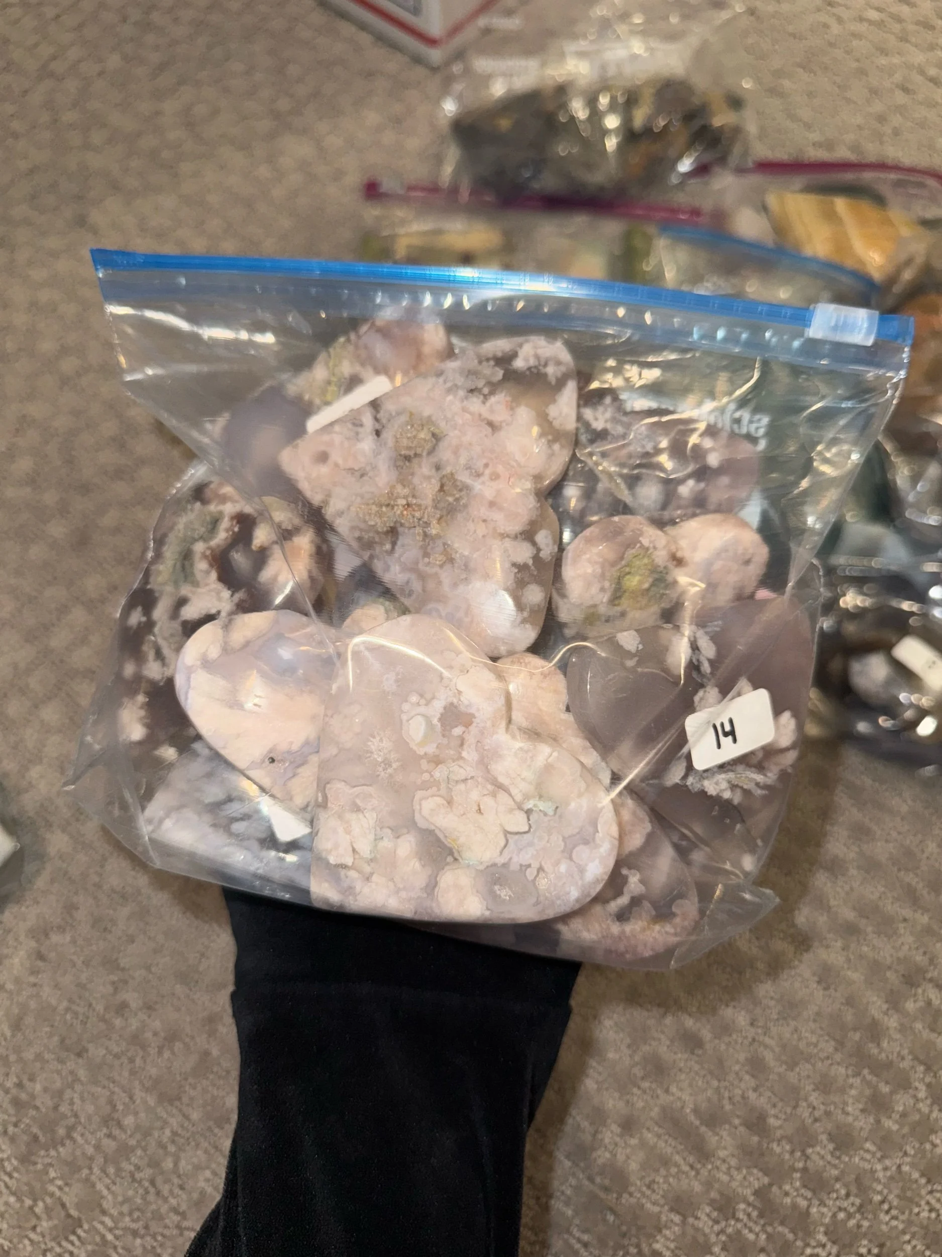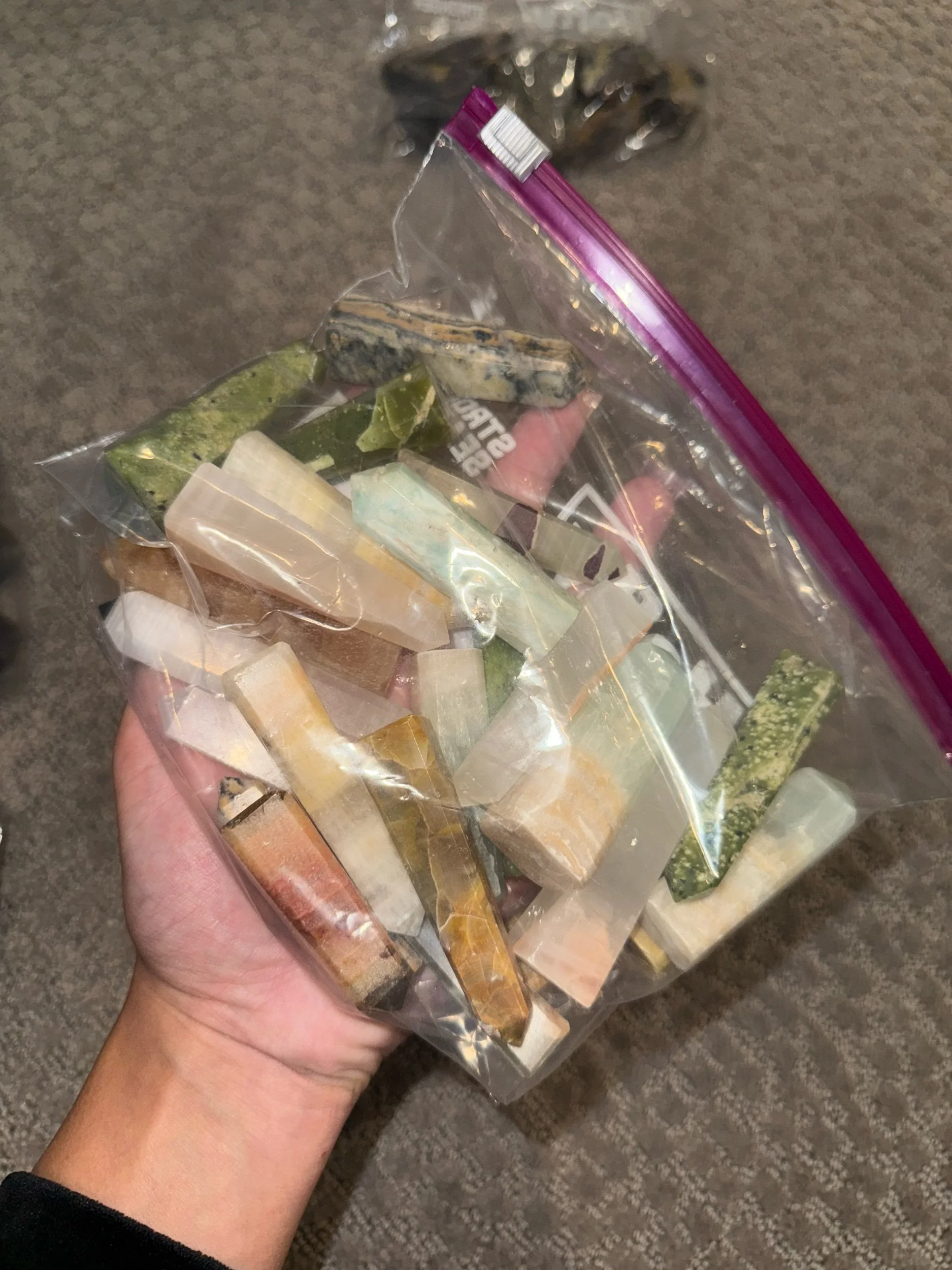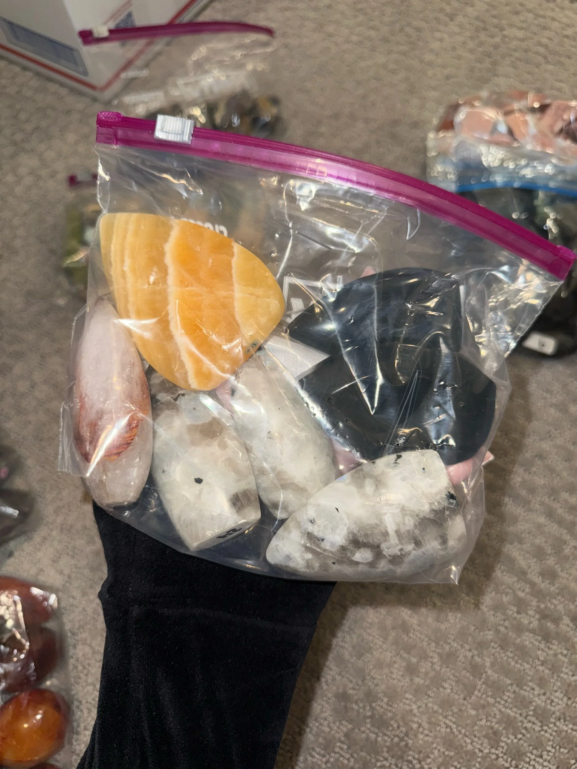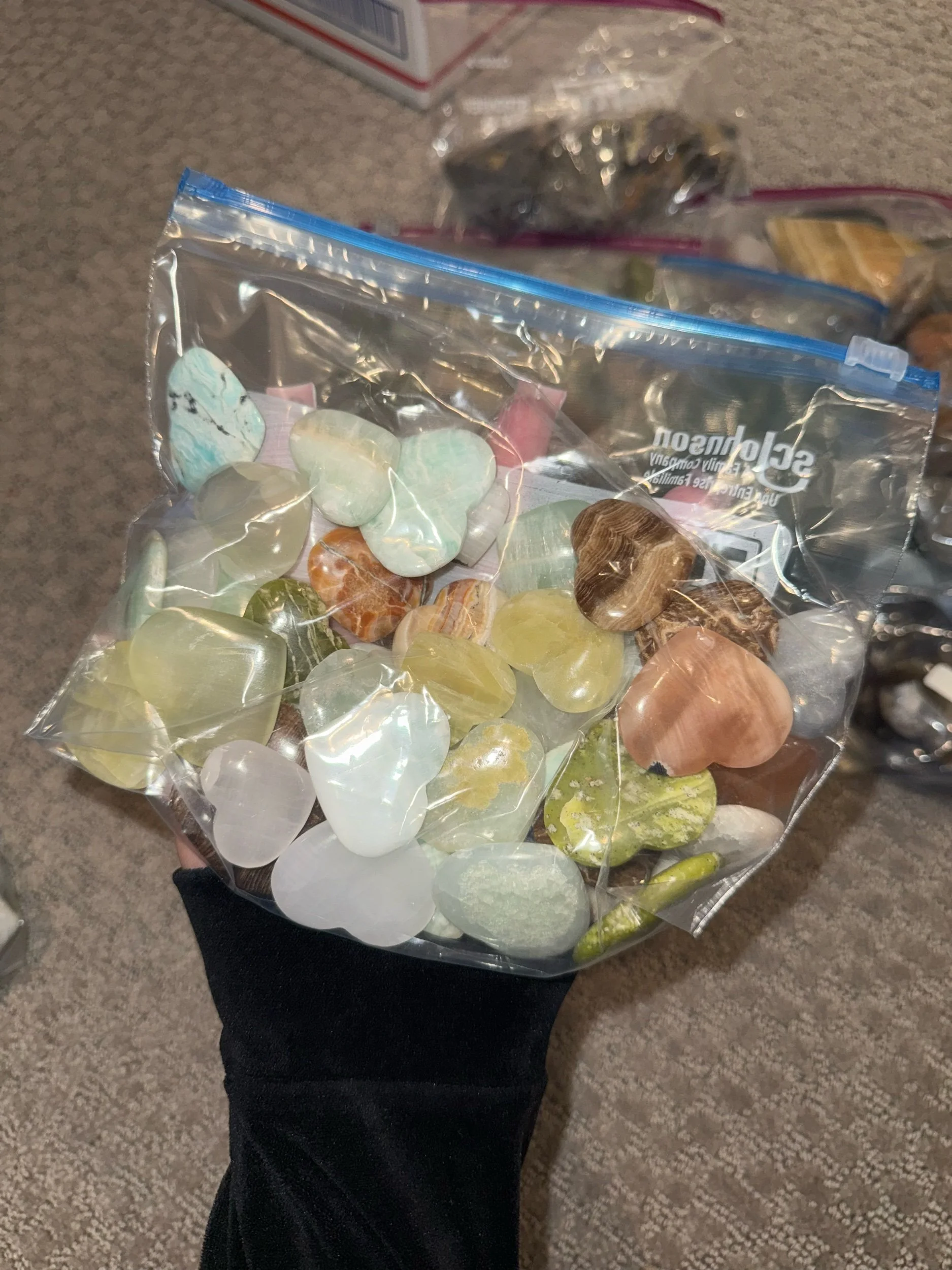 Lepidolite Freeform’s Bulk $20.00 Carnelian Palms Bulk $20.00 Mixed Mini Towers Bulk $20.00 HQ Fire Quartz Palms Bulk $20.00 Sold Out Red Sardonyx Palms Bulk $20.00 Black Moonstone Palm Bulk $20.00 Sold Out Big Fire Quartz Palms Bulk $20.00 Mixed Moonstone Carvings Bulk $20.00 Green Fluorite Hearts Bulk $20.00 Mixed Freeform Bulk $20.00 Cotton Candy Agate Freeform $20.00 Rainbow Moonstone Palms & Hearts Bulk $20.00 Sold Out Mixed Garden Quartz Shapes Bulk $20.00 Sold Out Black Flower Agate Hearts Bulk $20.00 Labradorite Palm Stone Bulk $20.00 Sold Out Flower Agate Heart Bulk $20.00 Mixed Mini Hearts Bulk $20.00 Sold Out Mix Mini Cubes Bulk $20.00 Sold Out Garden Quartz Chip Bulk $10.00 Kiwi Jasper Tumbles $10.00 Clear X Smokey Quartz Tumble Bulk $10.00 Mexican Lace Agate Tumble Bulk $10.00 Rose Quartz Tumble Bulk $10.00 Sold Out Amethyst Tumble Bulk $10.00 Sold Out Chevron Amethyst Tumble Bulk $10.00 Moss Agate Tumble Bulk $10.00 Sold Out Sodalite Tumble Bulk $10.00 Snowflake Obsidian Tumbles $10.00 Mini Petrified Wood Slices Bulk $20.00 2 Fluffy Okenite on Blue Chalcedony Specimens $50.00 2 Yooperlite Moons $12.00 2 High Quality Star Garnet Spheres $100.00 Sold Out 9 Carnelian Flames $18.00 3 Bowls $25.00 3 Druzy Flower Agate Spheres $15.00 2 Septarian Mushrooms $12.00 7 Piece Orthacera Fossils $10.00 5 Piece Set $23.00 4 Labradorite Shells $20.00 Set of 3 Nine Tail Fox’s $45.00 2 Butterfly Wing Set $40.00 4 Rutile 1 Garden Quartz $45.00 Grape Agate Specimen $10.00 Statement Apophyllite on Black Chalcedony Sale Price: $180.00 Original Price: $220.00 Sale Satin Spar Moon $10.00 Moss Agate Elephant Sphere Holder Sale Price: $10.00 Original Price: $15.00 Sold Out Statement Enhydro Sale Price: $230.00 Original Price: $300.00 Sale Pink Amethyst Dino $12.00 Pink Amethyst Goddess Body $12.00 Sphalerite X Green Fluorite Sphere $35.00 Pink Amethyst Freeform $75.00