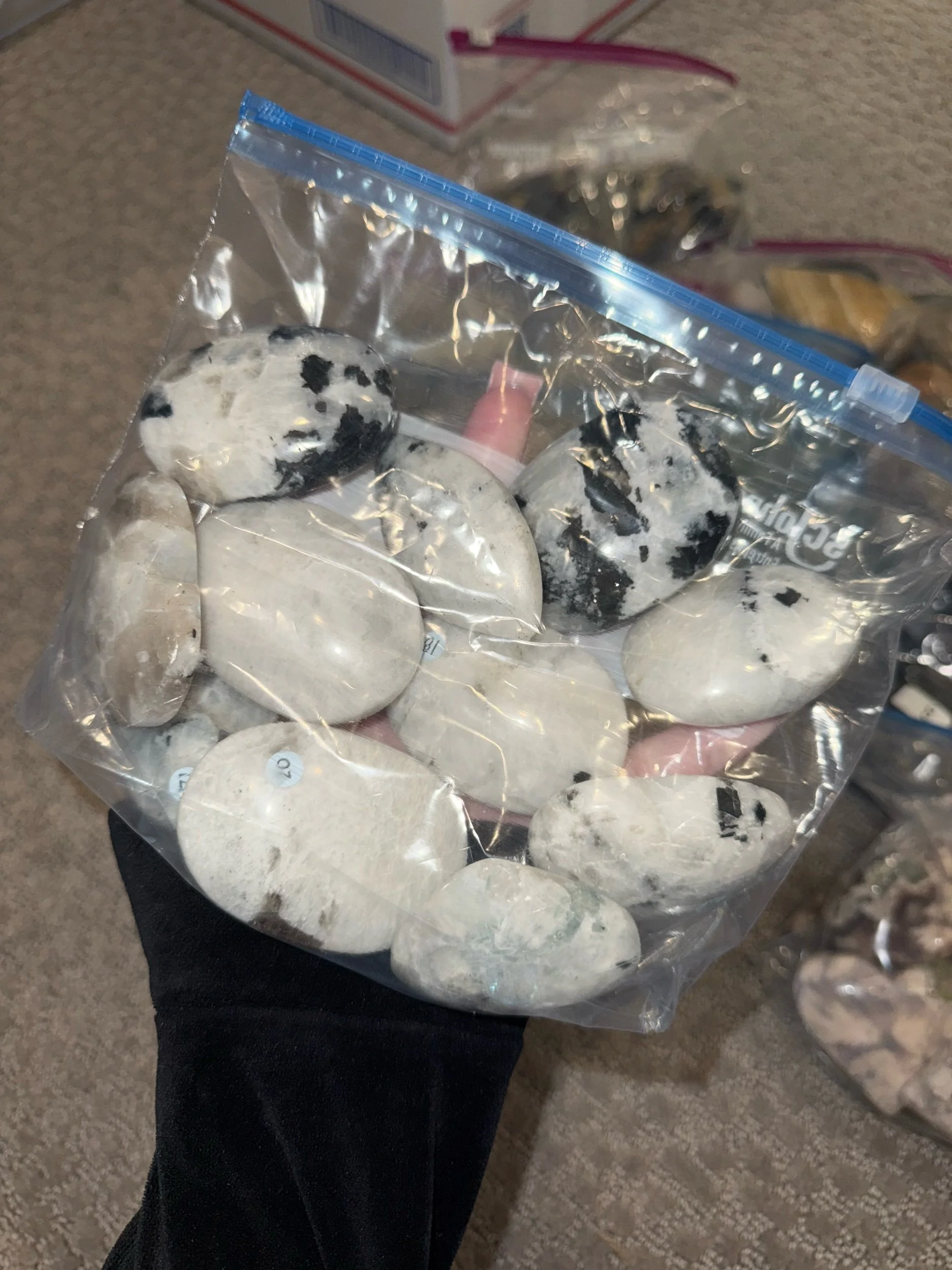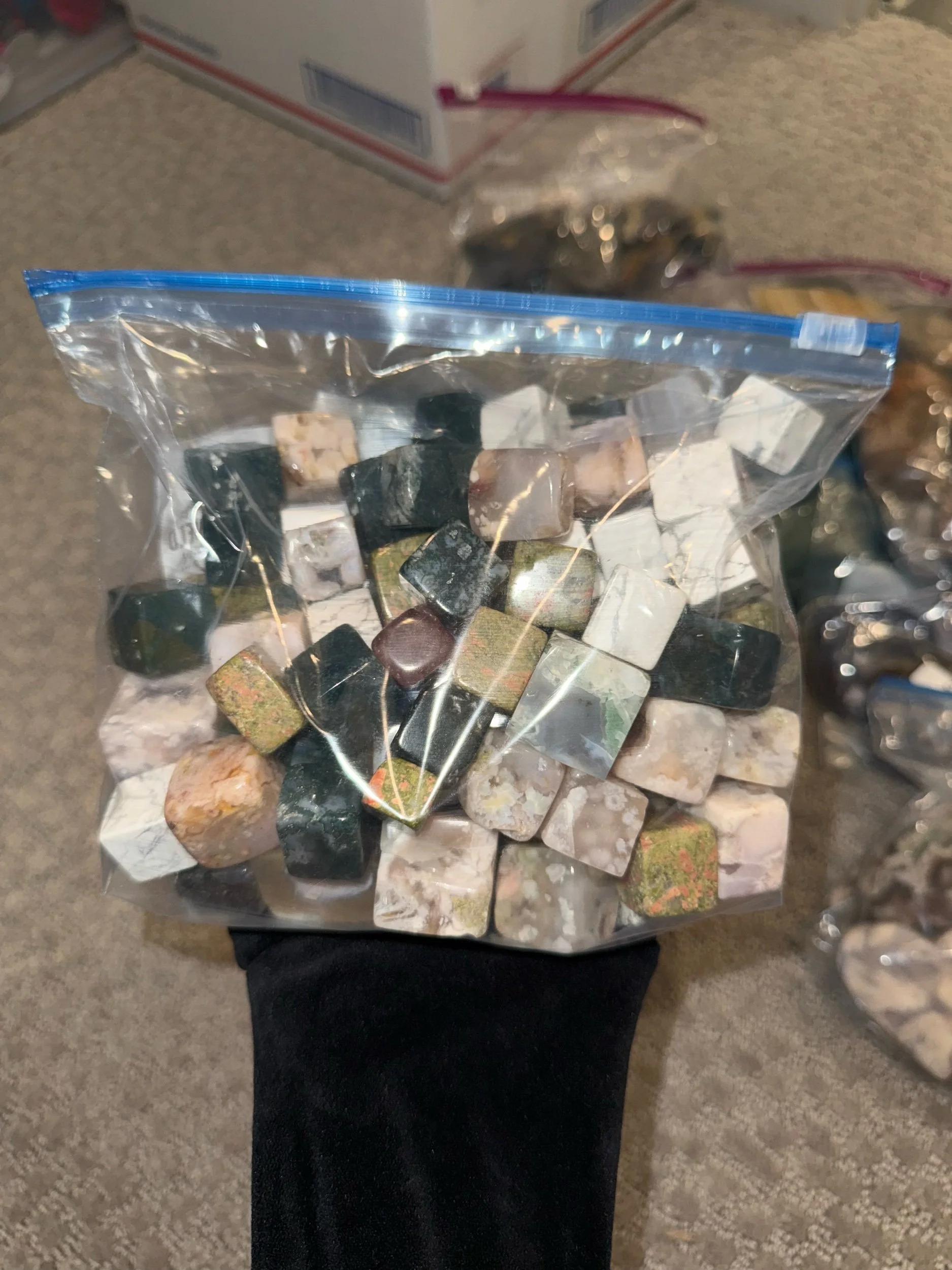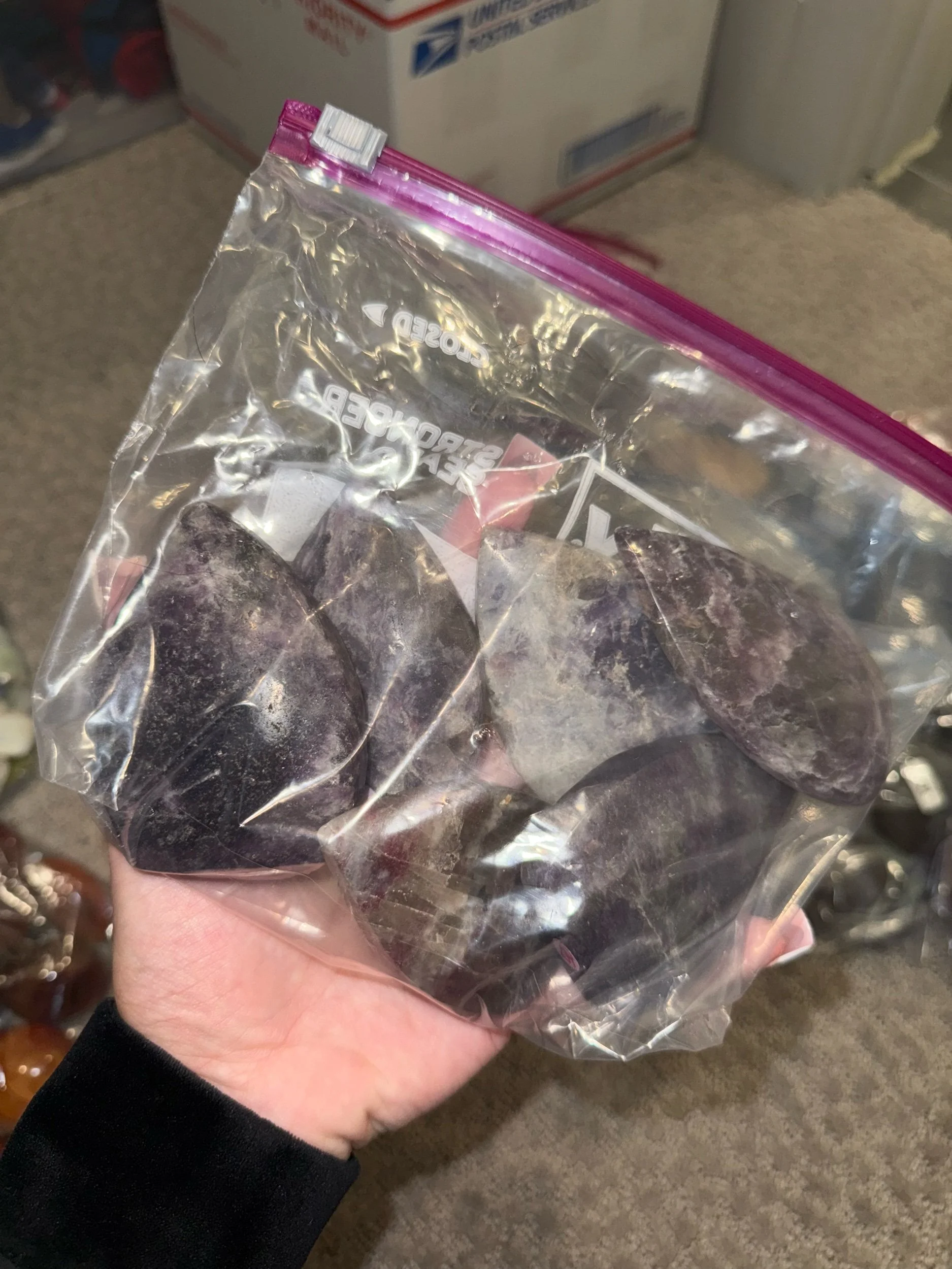 Lepidolite Freeform’s Bulk $20.00 Carnelian Palms Bulk $20.00 Mixed Mini Towers Bulk $20.00 HQ Fire Quartz Palms Bulk $20.00 Sold Out Red Sardonyx Palms Bulk $20.00 Black Moonstone Palm Bulk $20.00 Sold Out Big Fire Quartz Palms Bulk $20.00 Mixed Moonstone Carvings Bulk $20.00 Green Fluorite Hearts Bulk $20.00 Mixed Freeform Bulk $20.00 Cotton Candy Agate Freeform $20.00 Rainbow Moonstone Palms & Hearts Bulk $20.00 Sold Out Mixed Garden Quartz Shapes Bulk $20.00 Sold Out Black Flower Agate Hearts Bulk $20.00 Labradorite Palm Stone Bulk $20.00 Sold Out Flower Agate Heart Bulk $20.00 Mixed Mini Hearts Bulk $20.00 Sold Out Mix Mini Cubes Bulk $20.00 Sold Out Garden Quartz Chip Bulk $10.00 Kiwi Jasper Tumbles $10.00 Clear X Smokey Quartz Tumble Bulk $10.00 Mexican Lace Agate Tumble Bulk $10.00 Rose Quartz Tumble Bulk $10.00 Sold Out Amethyst Tumble Bulk $10.00 Sold Out Chevron Amethyst Tumble Bulk $10.00 Moss Agate Tumble Bulk $10.00 Sold Out Sodalite Tumble Bulk $10.00 Snowflake Obsidian Tumbles $10.00 Mini Petrified Wood Slices Bulk $20.00 2 Fluffy Okenite on Blue Chalcedony Specimens $50.00 2 Yooperlite Moons $12.00 2 High Quality Star Garnet Spheres $100.00 Sold Out 9 Carnelian Flames $18.00 3 Bowls $25.00 3 Druzy Flower Agate Spheres $15.00 2 Septarian Mushrooms $12.00 7 Piece Orthacera Fossils $10.00 5 Piece Set $23.00 4 Labradorite Shells $20.00 Set of 3 Nine Tail Fox’s $45.00 2 Butterfly Wing Set $40.00 4 Rutile 1 Garden Quartz $45.00 Grape Agate Specimen $10.00 Statement Apophyllite on Black Chalcedony Sale Price: $180.00 Original Price: $220.00 Sale Satin Spar Moon $10.00 Moss Agate Elephant Sphere Holder Sale Price: $10.00 Original Price: $15.00 Sold Out Statement Enhydro Sale Price: $230.00 Original Price: $300.00 Sale Pink Amethyst Dino $12.00 Pink Amethyst Goddess Body $12.00 Sphalerite X Green Fluorite Sphere $35.00 Pink Amethyst Freeform $75.00