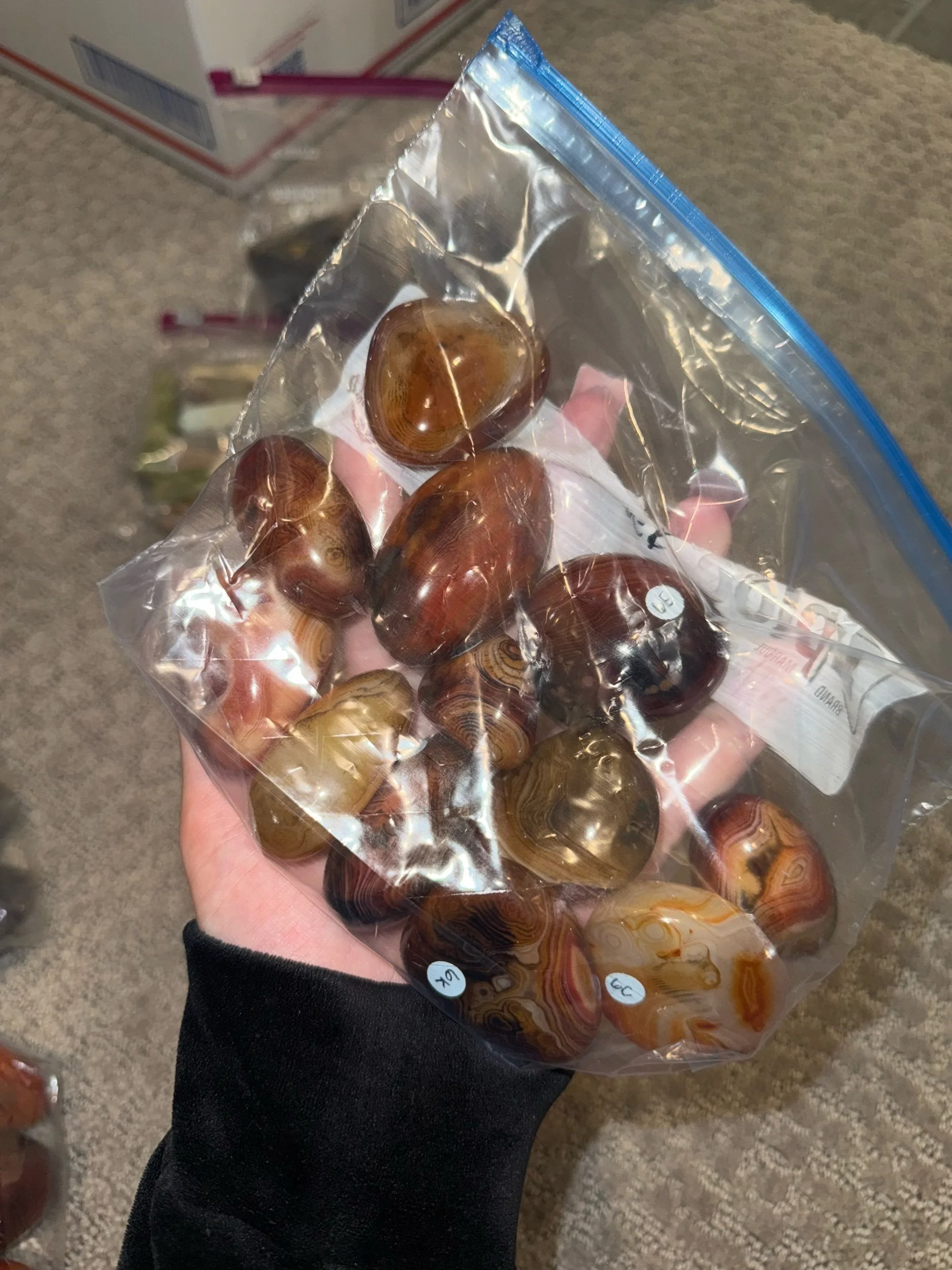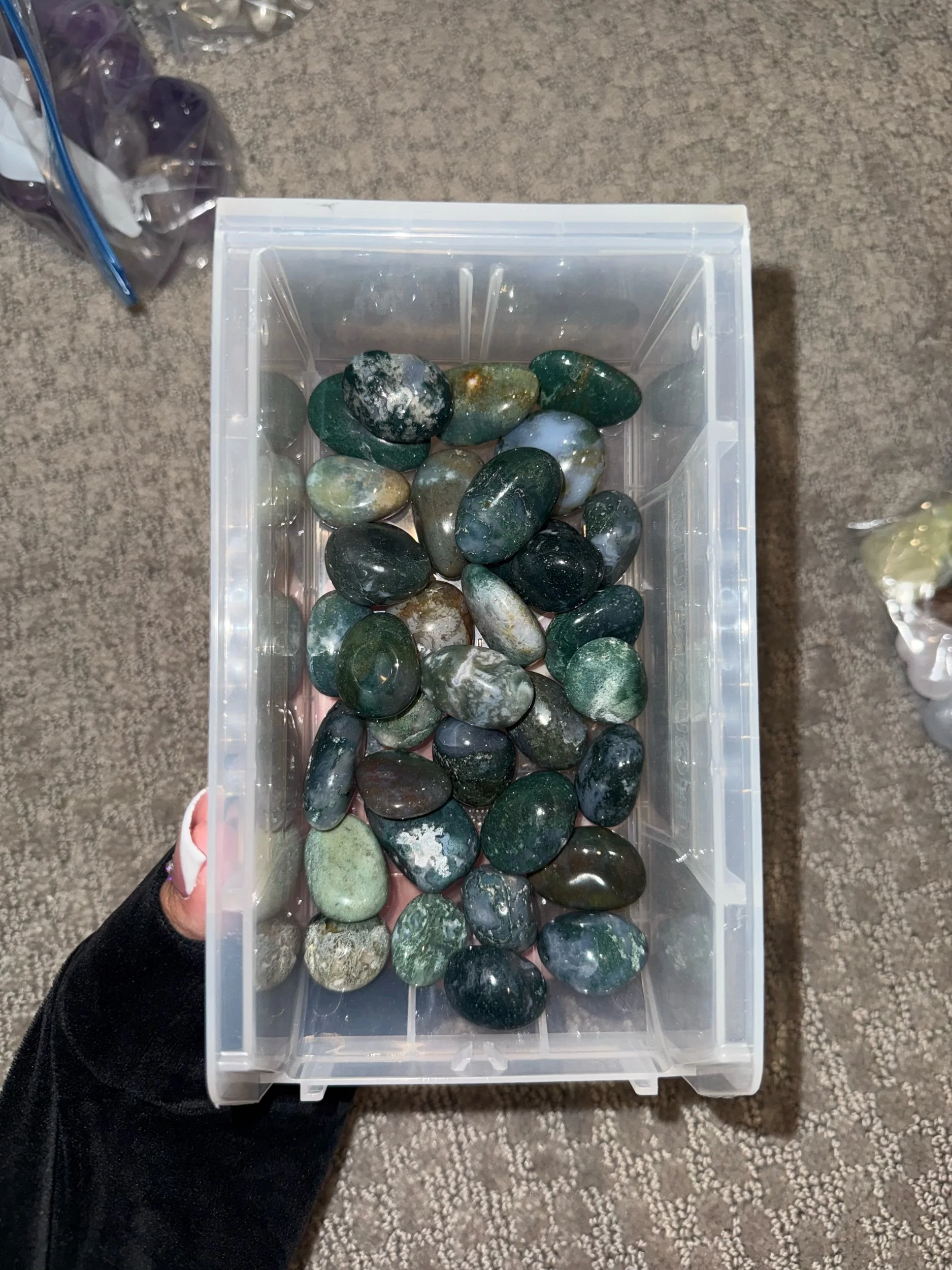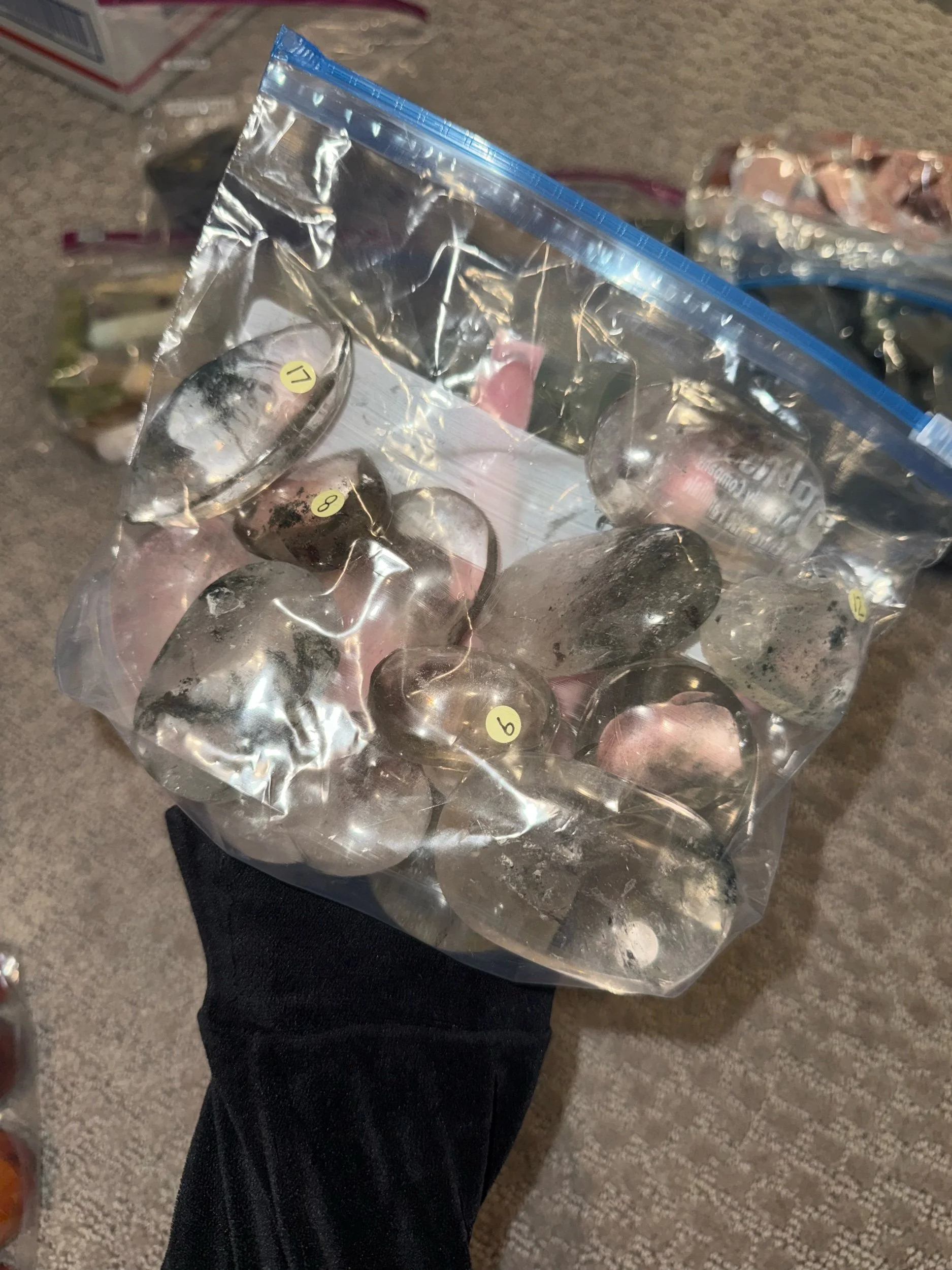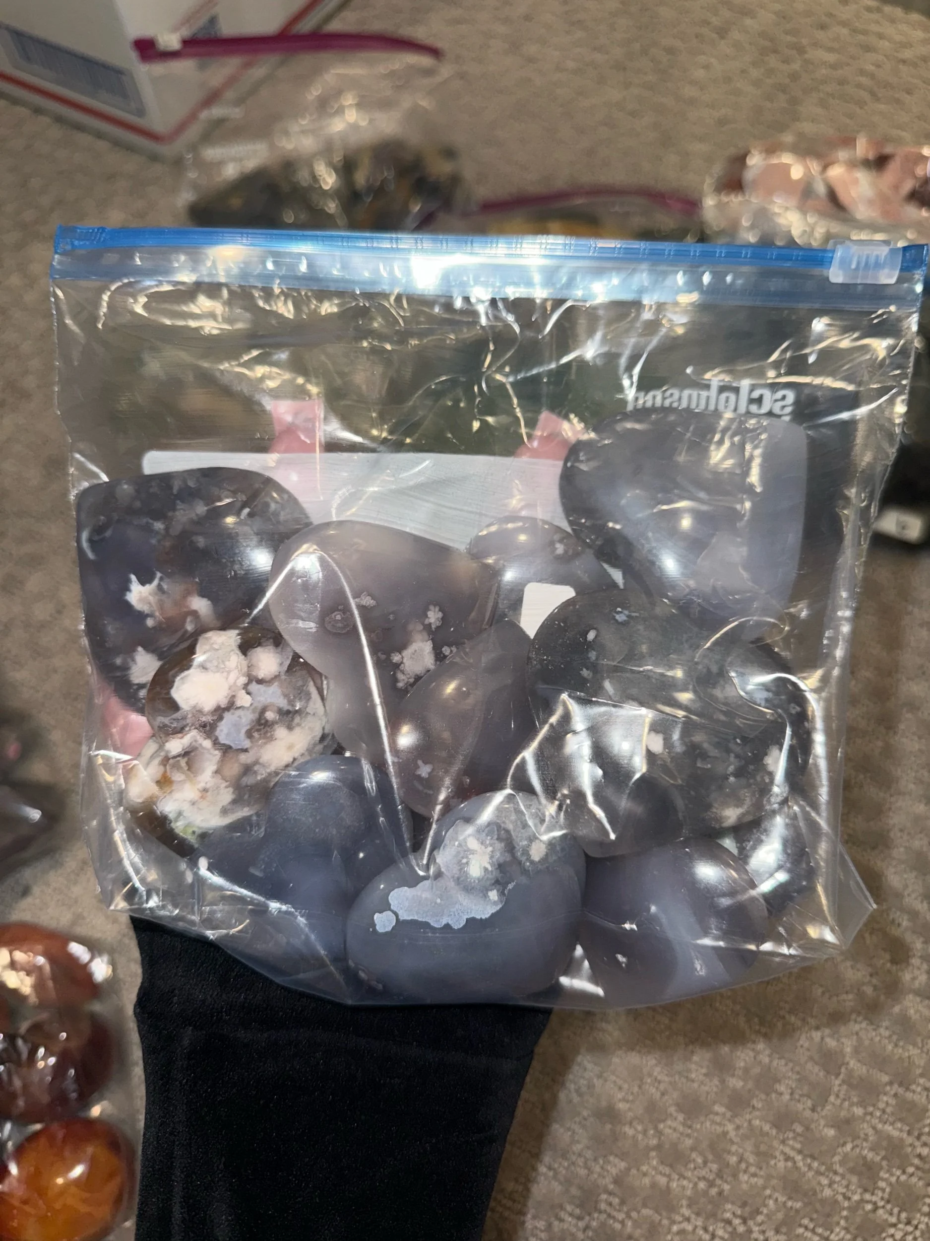 Lepidolite Freeform’s Bulk $20.00 Carnelian Palms Bulk $20.00 Mixed Mini Towers Bulk $20.00 HQ Fire Quartz Palms Bulk $20.00 Sold Out Red Sardonyx Palms Bulk $20.00 Black Moonstone Palm Bulk $20.00 Sold Out Big Fire Quartz Palms Bulk $20.00 Mixed Moonstone Carvings Bulk $20.00 Green Fluorite Hearts Bulk $20.00 Mixed Freeform Bulk $20.00 Cotton Candy Agate Freeform $20.00 Rainbow Moonstone Palms & Hearts Bulk $20.00 Sold Out Mixed Garden Quartz Shapes Bulk $20.00 Sold Out Black Flower Agate Hearts Bulk $20.00 Labradorite Palm Stone Bulk $20.00 Sold Out Flower Agate Heart Bulk $20.00 Mixed Mini Hearts Bulk $20.00 Sold Out Mix Mini Cubes Bulk $20.00 Sold Out Garden Quartz Chip Bulk $10.00 Kiwi Jasper Tumbles $10.00 Clear X Smokey Quartz Tumble Bulk $10.00 Mexican Lace Agate Tumble Bulk $10.00 Rose Quartz Tumble Bulk $10.00 Sold Out Amethyst Tumble Bulk $10.00 Sold Out Chevron Amethyst Tumble Bulk $10.00 Moss Agate Tumble Bulk $10.00 Sold Out Sodalite Tumble Bulk $10.00 Snowflake Obsidian Tumbles $10.00 Mini Petrified Wood Slices Bulk $20.00 2 Fluffy Okenite on Blue Chalcedony Specimens $50.00 2 Yooperlite Moons $12.00 2 High Quality Star Garnet Spheres $100.00 Sold Out 9 Carnelian Flames $18.00 3 Bowls $25.00 3 Druzy Flower Agate Spheres $15.00 2 Septarian Mushrooms $12.00 7 Piece Orthacera Fossils $10.00 5 Piece Set $23.00 4 Labradorite Shells $20.00 Set of 3 Nine Tail Fox’s $45.00 2 Butterfly Wing Set $40.00 4 Rutile 1 Garden Quartz $45.00 Grape Agate Specimen $10.00 Statement Apophyllite on Black Chalcedony Sale Price: $180.00 Original Price: $220.00 Sale Satin Spar Moon $10.00 Moss Agate Elephant Sphere Holder Sale Price: $10.00 Original Price: $15.00 Sold Out Statement Enhydro Sale Price: $230.00 Original Price: $300.00 Sale Pink Amethyst Dino $12.00 Pink Amethyst Goddess Body $12.00 Sphalerite X Green Fluorite Sphere $35.00 Pink Amethyst Freeform $75.00